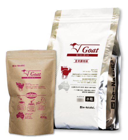 肉類(ヤギ、カンガルー*、ラム)、全粒たかきび(ソルガム)、全粒ライムギ、パン酵母*、キャノーラ油(NON-GMO)、アルファルファ(NON-GMO)、蔗糖、サーモンオイル、モンモリロナイト、亜麻仁油、チコリー根(フラクトオリゴ糖)、L-スレオニン、オオバコ繊維、ユッカ抽出物、パン酵母抽出物、DL-メチオニン、タウリン、アボカドオイル、L-トリプトファン、酸化防止剤(ミックストコフェロール、ローズマリー抽出物)、ビタミン類(A、D、B1、B2、B3、パントテン酸、B6、葉酸、B12、E)、ミネラル類(塩化ナトリウム、第二リン酸カルシウム、塩化カリウム、硫酸銅、ヨウ化カリウム、硫酸第一鉄、酸化マンガン、硫酸亜鉛、セレン)*酵素で加水分解
