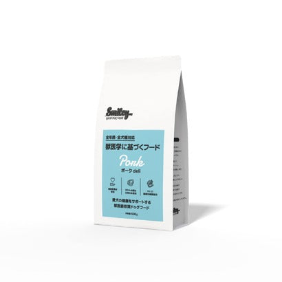 多くの栄養素を持つ豚生肉使用でワンちゃんの健康な体型、皮膚被毛の維持をサポート。全年齢・全犬種に対応のフード。